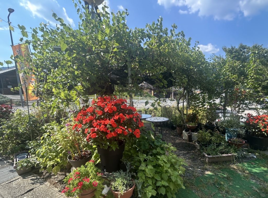 お店の周りはいつも季節の花やイチゴ、ブルーベリーであふれていてとてもいい雰囲気のお店でこれまでにも何回か訪れています。