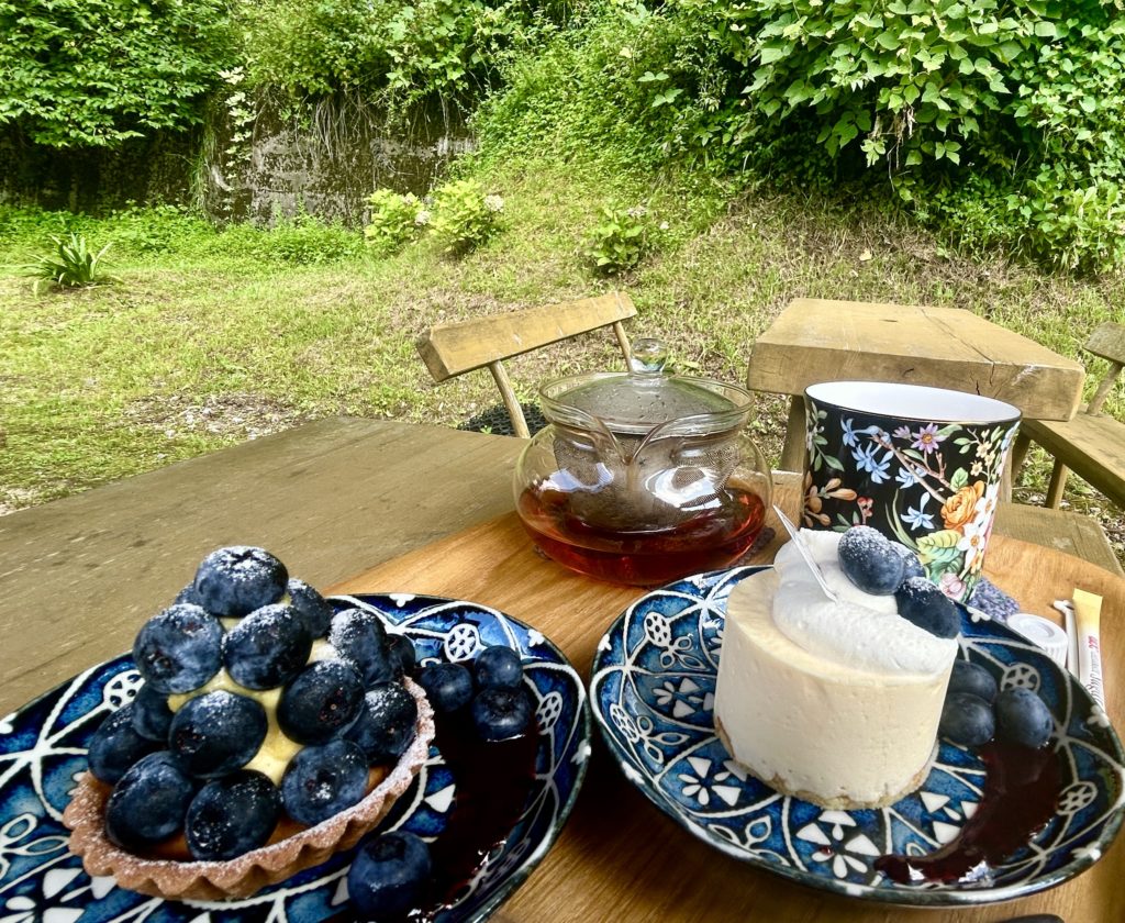 屋外でもケーキをいただけるとのことで、外のテーブルでゆったりと美味しくいただきました。