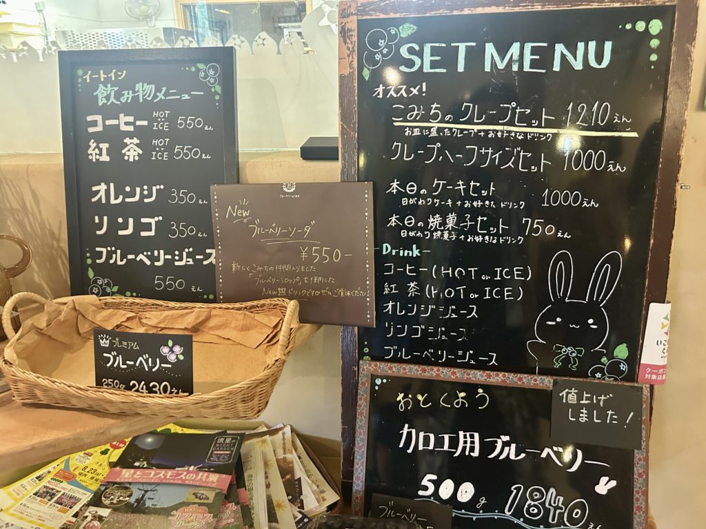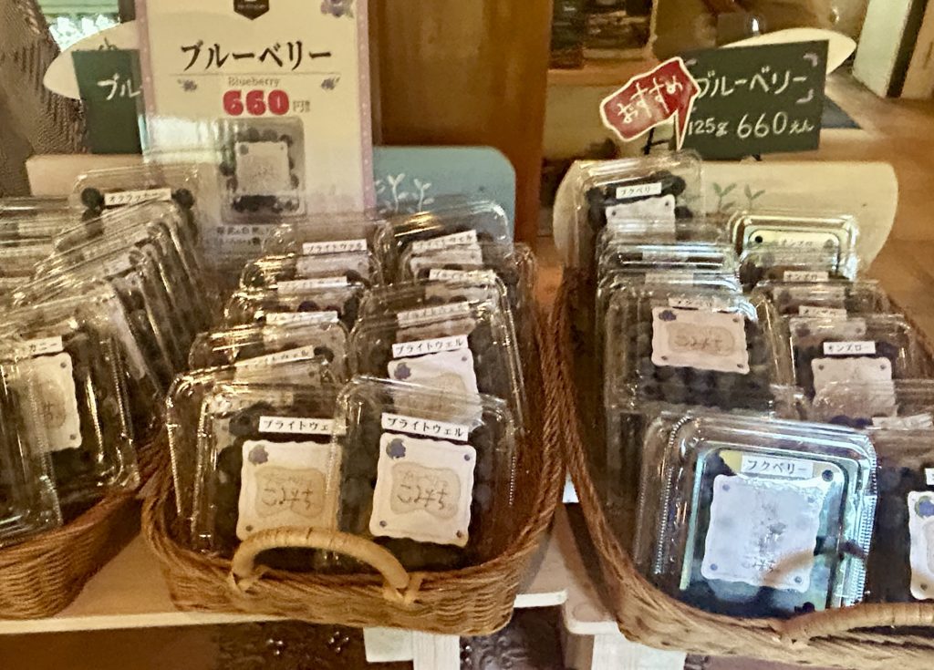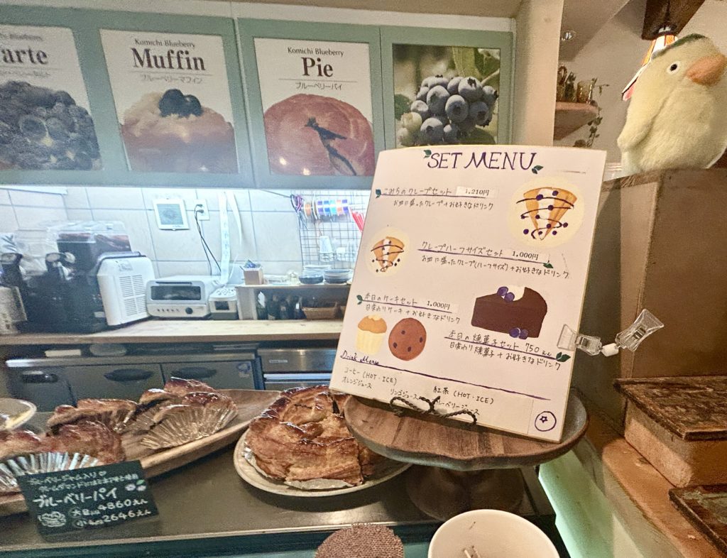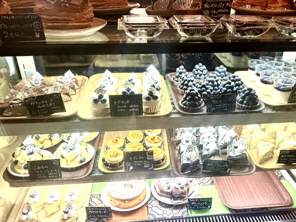 中に入ってみるとブルーベリーをふんだんに使ったケーキがいっぱいです。わくわくしてしまいますね。